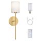 Wayfarer Wireless 22in Wall Sconces with USB-C Rechargeable LED Lamp 10W 800 Lumens RGBCW and Selectable CCT with White Cylinder Fabric Shade in Aged Brass (Remote Included)